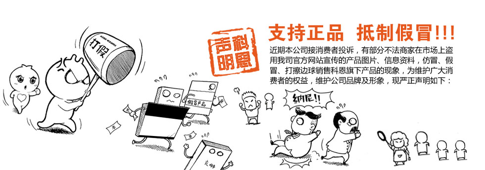 特此聲明:本公司對已發(fā)現(xiàn)的偽劣、仿冒和假冒科恩產(chǎn)品逐步曝光,希望廣大消費(fèi)者提高警惕,避免不必要的損失,對提供舉報(bào)線索的用戶本公司給予重獎(jiǎng)。