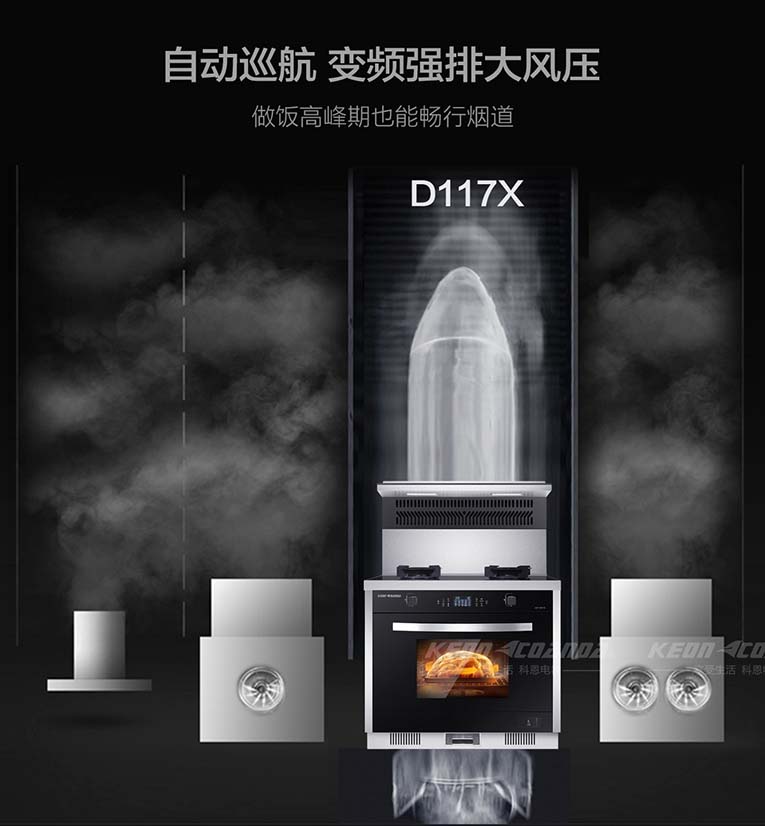 作為10余載高端廚電品牌,科恩電器一直引領(lǐng)著集成灶行業(yè)的發(fā)展,始終秉承著“為顧客提供更優(yōu)質(zhì)的廚電產(chǎn)品”。為時(shí)刻應(yīng)對(duì)消費(fèi)者需求,科恩電器不斷創(chuàng)新研發(fā)新品,積極布局集成灶產(chǎn)業(yè),以“蒸烤消一體、變頻大吸力、模塊化、冰箱門(mén)、大容量三抽”五大核心的產(chǎn)品矩陣優(yōu)勢(shì)引領(lǐng)廚電行業(yè)風(fēng)潮!科恩智能變頻大吸力集成灶D117X作為新一代廚電產(chǎn)品,憑借擁有≥720Pa大風(fēng)壓智能巡航系統(tǒng),高達(dá)21m3/min爆吸技術(shù),為用戶們有效解決了控?zé)煛⑴艧焼?wèn)題,滿足不同的烹飪方式和開(kāi)放式廚房的無(wú)煙生態(tài)環(huán)境而大受歡迎!