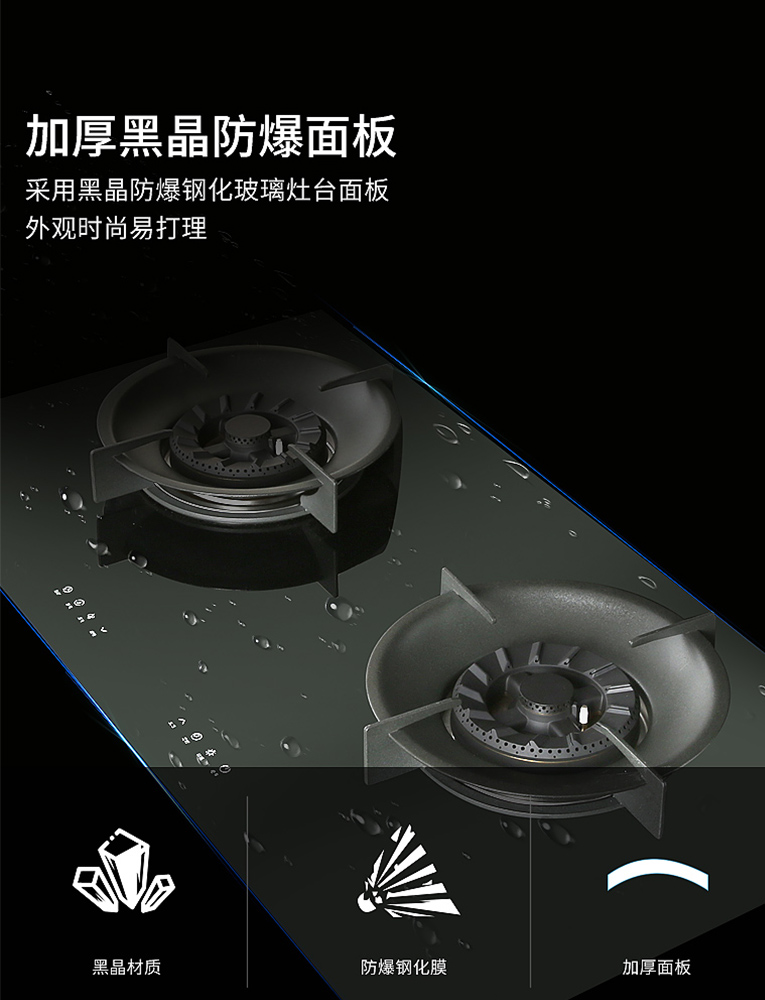 夏天廚房的清潔也是令人頭痛的一個問題,沒每次爆炒后四濺的油煙附著在臺面上就很讓人糾結,而集成灶十大品牌、廚電行業十大品牌科恩D151X變頻大吸力蒸烤消一體集成灶采用黑晶防爆玻璃面板,黑晶材質油煙不易吸附易打理,輕輕一擦就能潔凈。