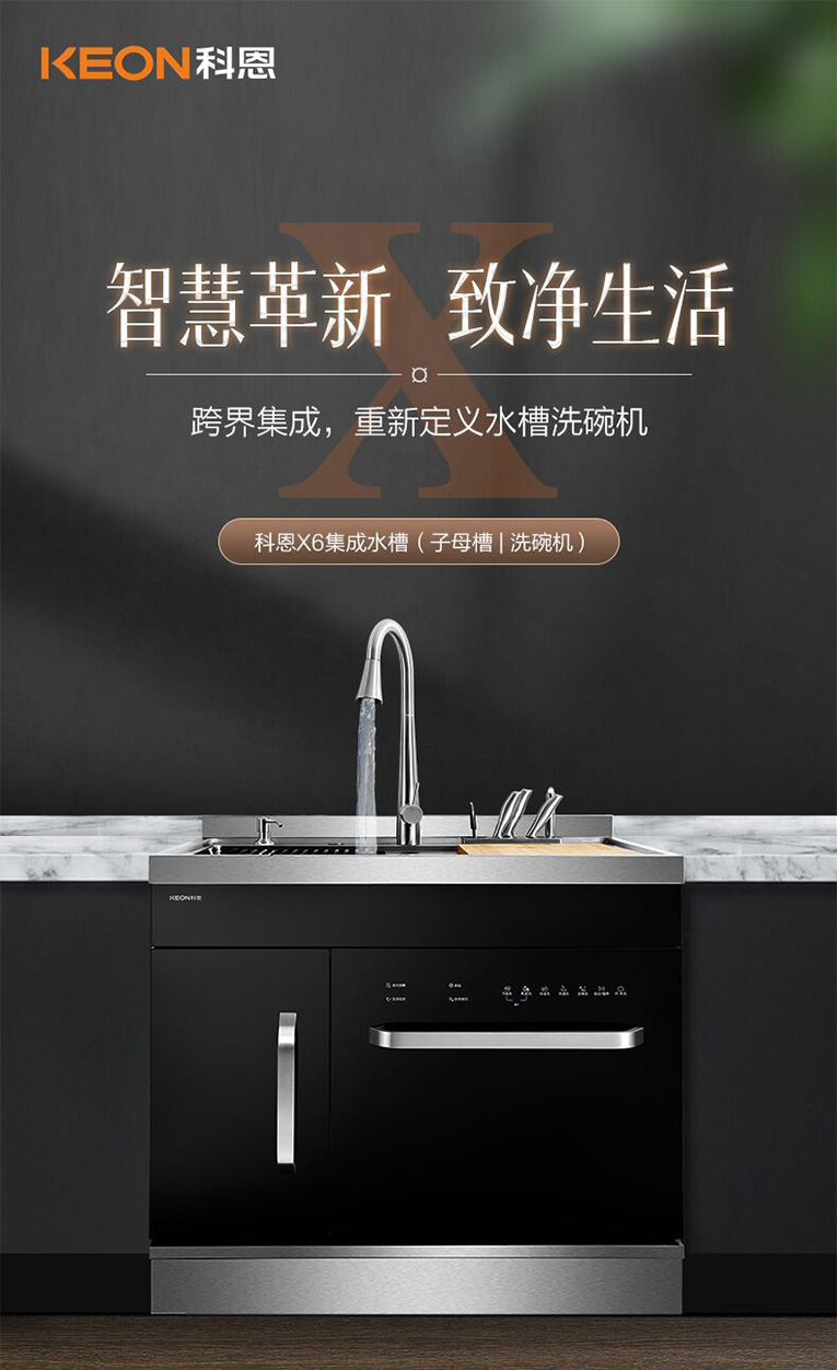 洗滌區(qū)集成革命,科恩X6集成水槽解放雙手!寧可燒飯也不洗碗,X6集成水槽核心是將水槽、洗碗機(jī)、切菜板、瀝水籃等功能集成一體,解決空間問題,真正做到洗、消、烘、存一體,節(jié)約餐后洗碗時(shí)間,可以更好的陪伴家人。