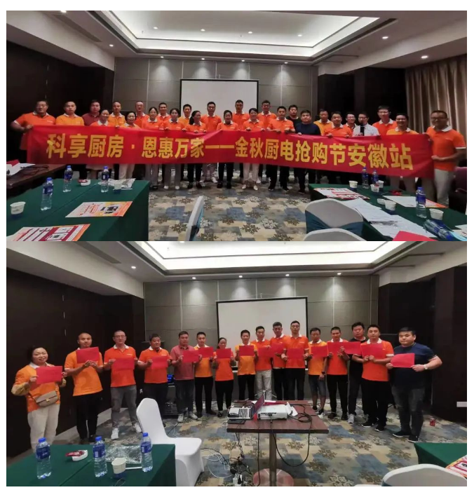 實(shí)操演練和簽訂軍令狀環(huán)節(jié)使得本次啟動大會的氣氛達(dá)到最高潮,至此,科享廚房·恩惠萬家——金秋廚電搶購節(jié)安徽站大促活動的號角正式打響!大家斗志昂揚(yáng),信心滿滿,相信依靠科恩總部的戰(zhàn)略指導(dǎo),營銷精英的培訓(xùn)督導(dǎo)以及全體科恩人的不懈努力下,本次大促活動必將火爆全城!