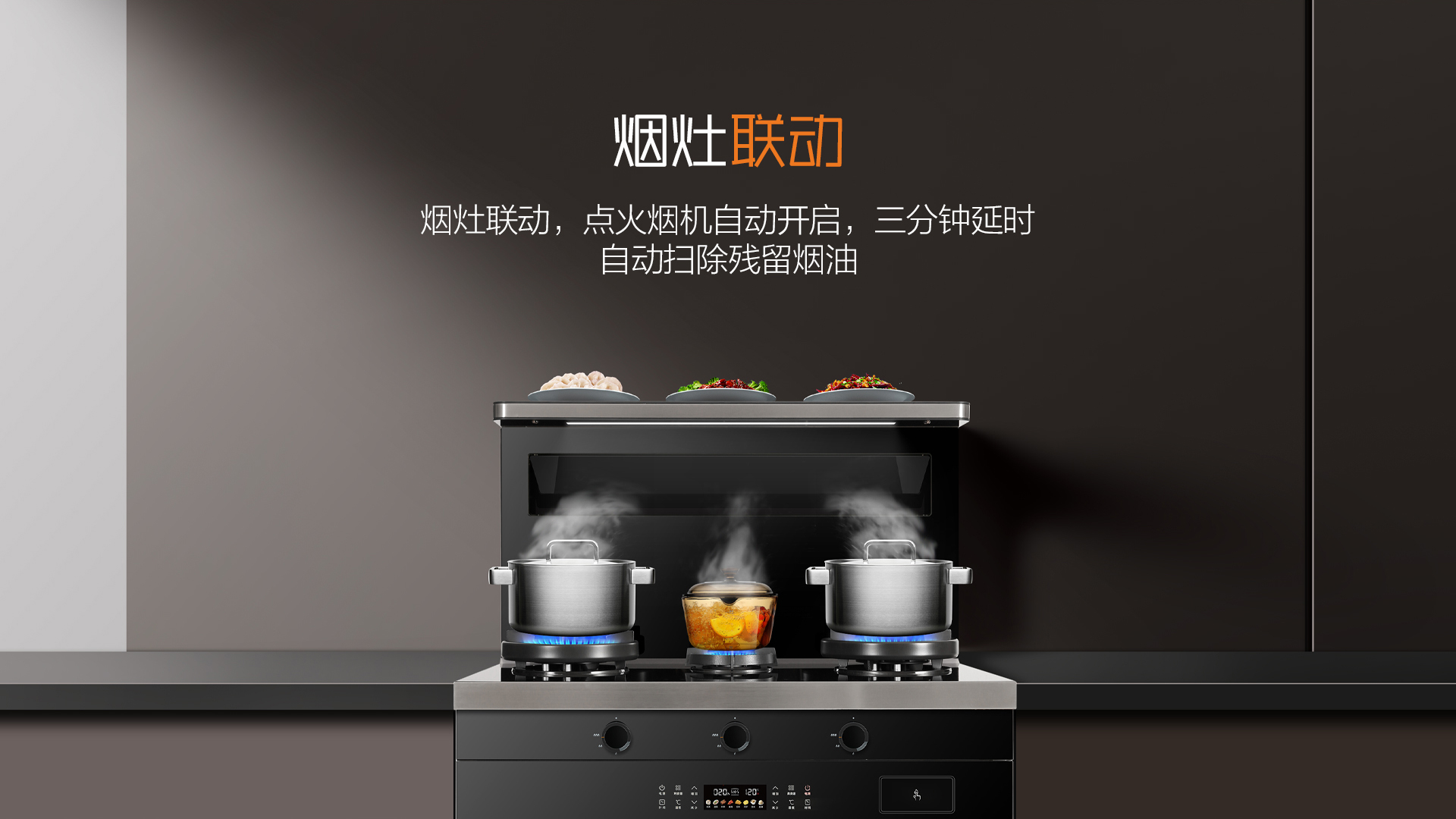 與普通煙灶聯(lián)動(dòng)不同,A3系列打開(kāi)灶具的同時(shí)煙機(jī)與照明燈同時(shí)打開(kāi),且煙機(jī)可根據(jù)火力大小自動(dòng)調(diào)節(jié),無(wú)需再手動(dòng)調(diào)節(jié),風(fēng)隨火動(dòng)廚房更智能。