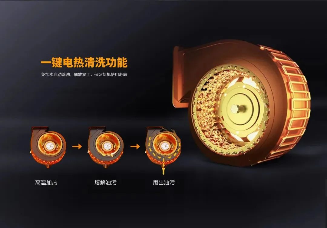 科恩免清洗煙機標配智旋洗,高溫電加熱,有效熔化風(fēng)柜內(nèi)壁和葉輪上的部分油垢,再通過風(fēng)輪的離心力將油污甩到室外和過濾到油杯,從而完成清洗全過程,但即使這樣也無法解決風(fēng)輪長年累月因油脂油污附著負荷工作而造成的吸力下降,吸煙效果變差,清洗打理困難,甚至煙機抖動和安全等諸多問題......