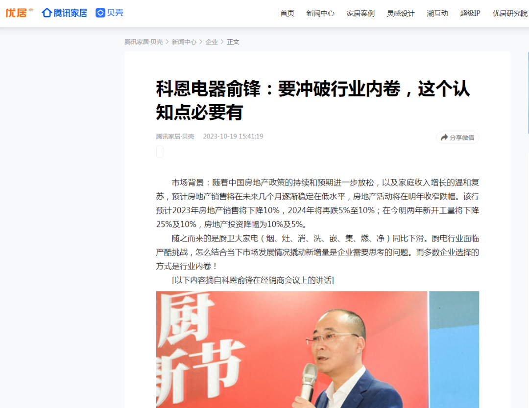 市場內卷有兩個比較明顯的標記,一個標記就是價格被不斷揭穿底線;另外一個標記就是增量客戶不斷消失,大家都開始去做存量市場。這兩個標記在廚電行業已經很明顯。