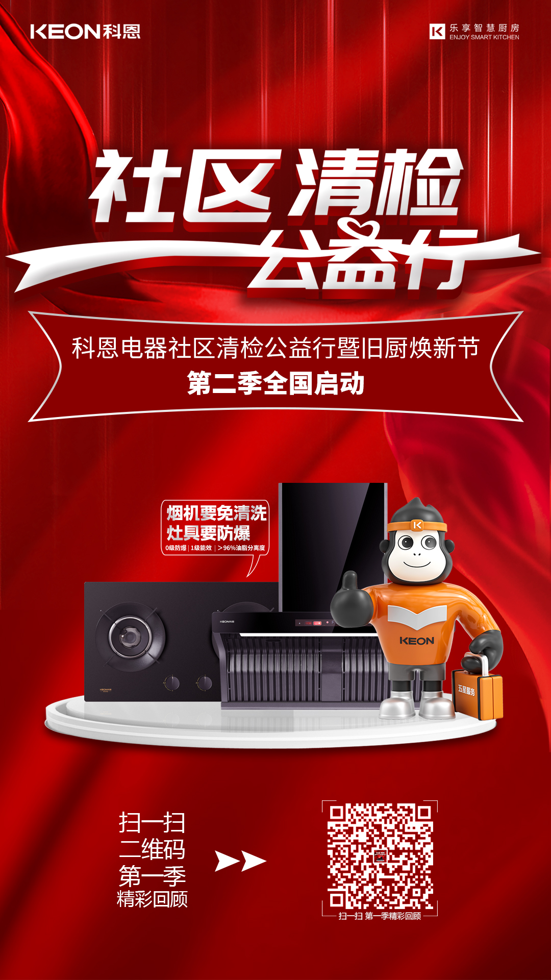 2023年,廚電行業(yè)面臨嚴(yán)酷挑戰(zhàn),怎么結(jié)合當(dāng)下市場(chǎng)發(fā)展情況撬動(dòng)新增量是企業(yè)需要思考的問(wèn)題。科恩緊跟國(guó)家政策,深入開(kāi)展家電以舊換新政策,以“社區(qū)清檢公益行”為主題深入千家萬(wàn)戶。