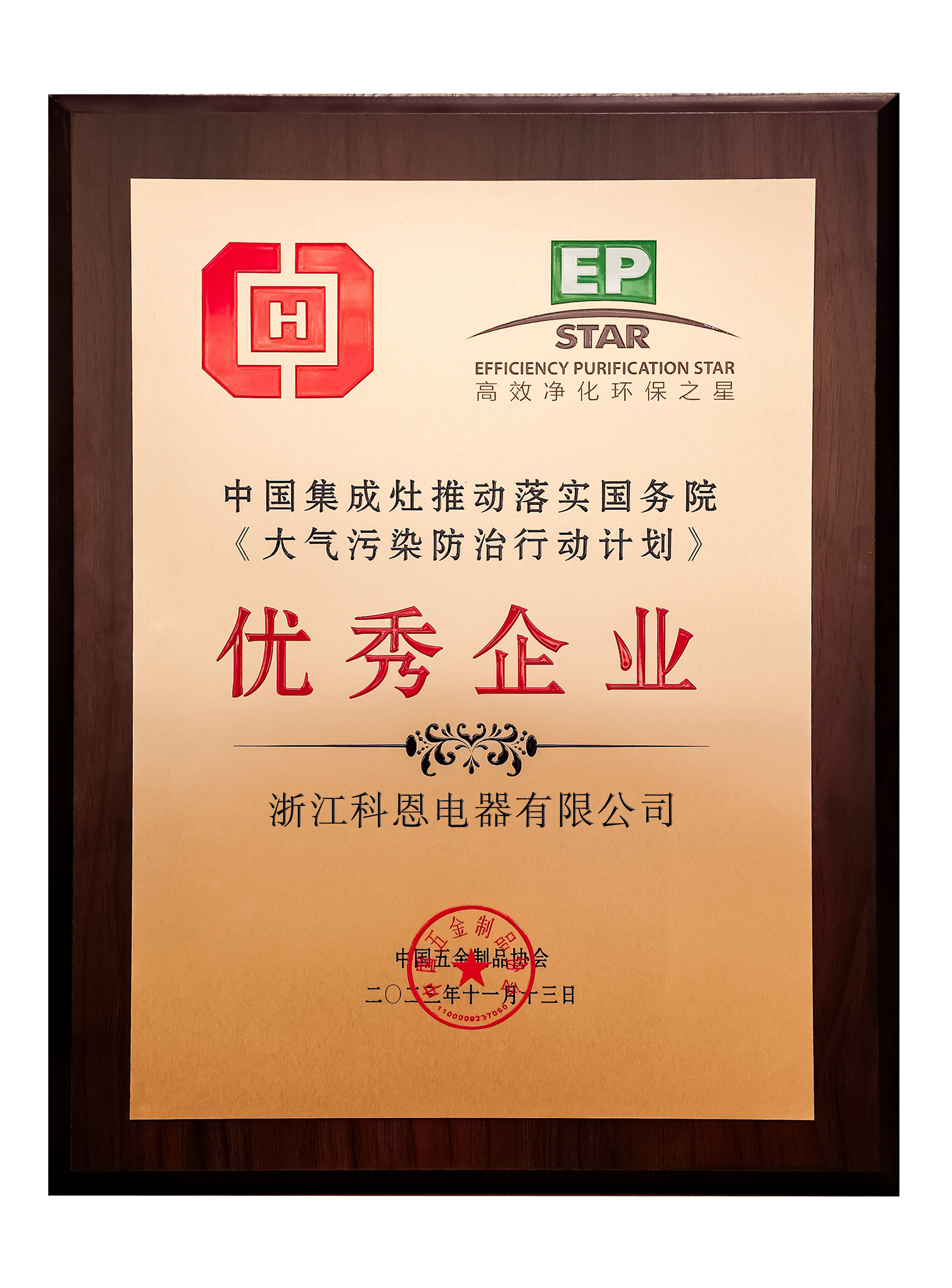 2023年11月28日,主題為“煙火人間 凈秀山河”有中國(guó)五金制品協(xié)會(huì)召開的“中國(guó)五金制品協(xié)會(huì)吸油煙機(jī)分會(huì)·換屆&技術(shù)大會(huì)暨‘高效凈化環(huán)保之星’10周年慶典”在杭州隆重舉辦。會(huì)上發(fā)布了獲得本屆“高效凈化環(huán)保之星”的優(yōu)秀企業(yè),并向多年來(lái)連續(xù)參與此項(xiàng)目并表現(xiàn)突出的企業(yè)給予了嘉獎(jiǎng)。科恩再一次榮獲“中國(guó)五金制品協(xié)會(huì)-理事單位”及“中國(guó)集成灶推動(dòng)落實(shí)國(guó)務(wù)院《大氣污染防治行動(dòng)計(jì)劃》-優(yōu)秀企業(yè)”!