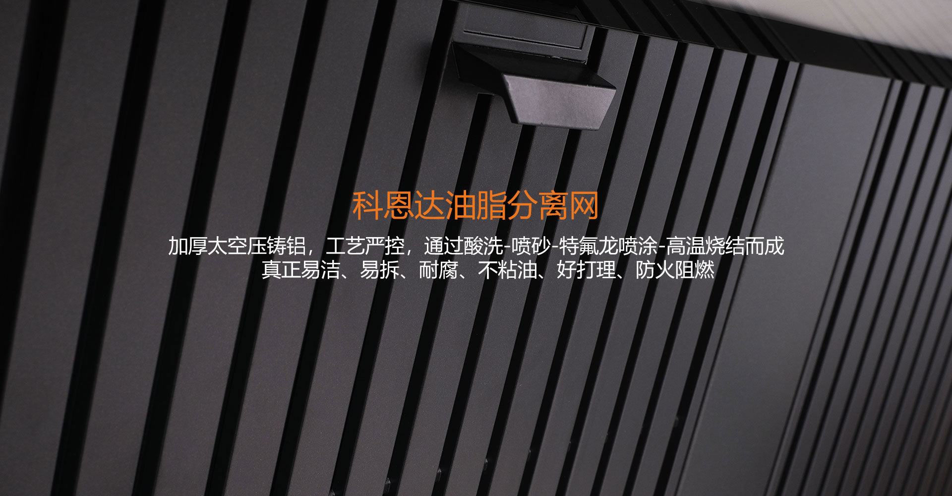 科恩達三層油脂分離網(wǎng),加厚太空壓鑄鋁,工藝嚴控,通過酸洗-噴砂-特氟龍噴涂-高溫燒結(jié)而成真正易潔、易拆、耐腐、不粘油、好打理防火阻燃。