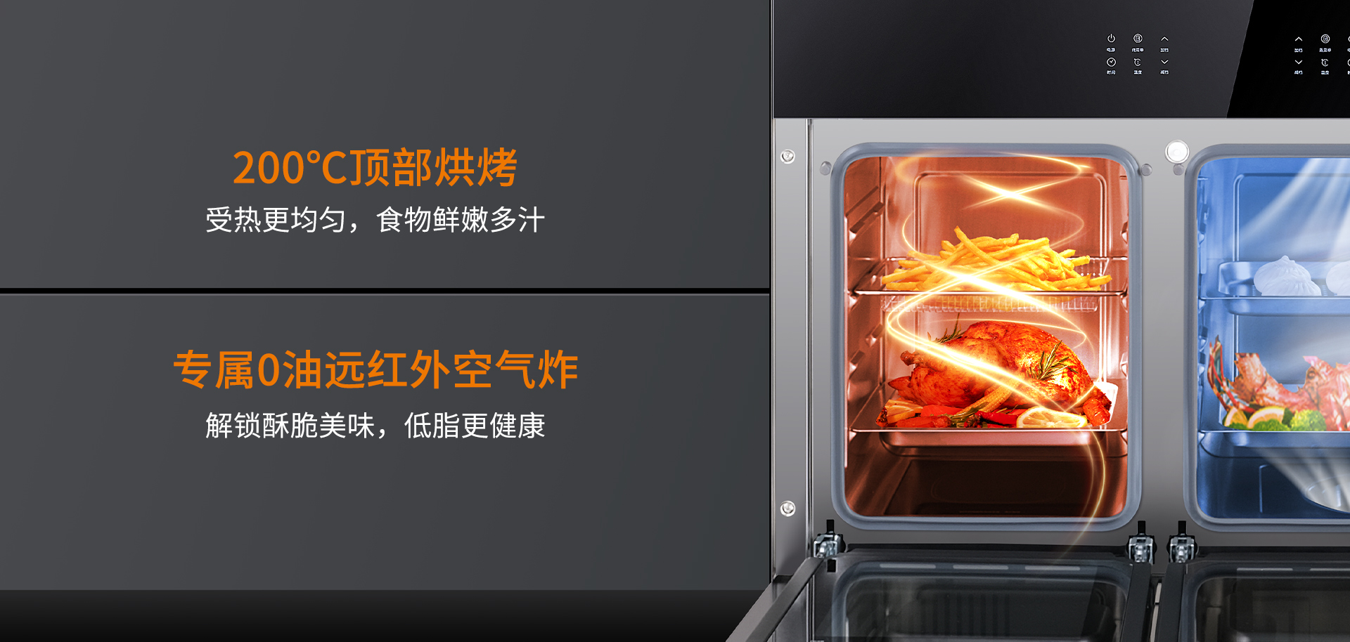 中國人的廚房是情感的紐帶,但同時也是發生矛盾沖突的場所。我們發現四代同堂的二胎家庭,往往有這樣的矛盾,老大要吃蒸的,老二要吃烤的,難以同時滿足兩個人的需求,讓自己陷入一碗水端不平的尷尬。一臺科恩S450L就能解決你的煩惱,蒸烤獨立的設置可同時滿足蒸烤需求,讓烹飪不再等待!同時,在配置上也不屬于任何單獨蒸烤箱。
