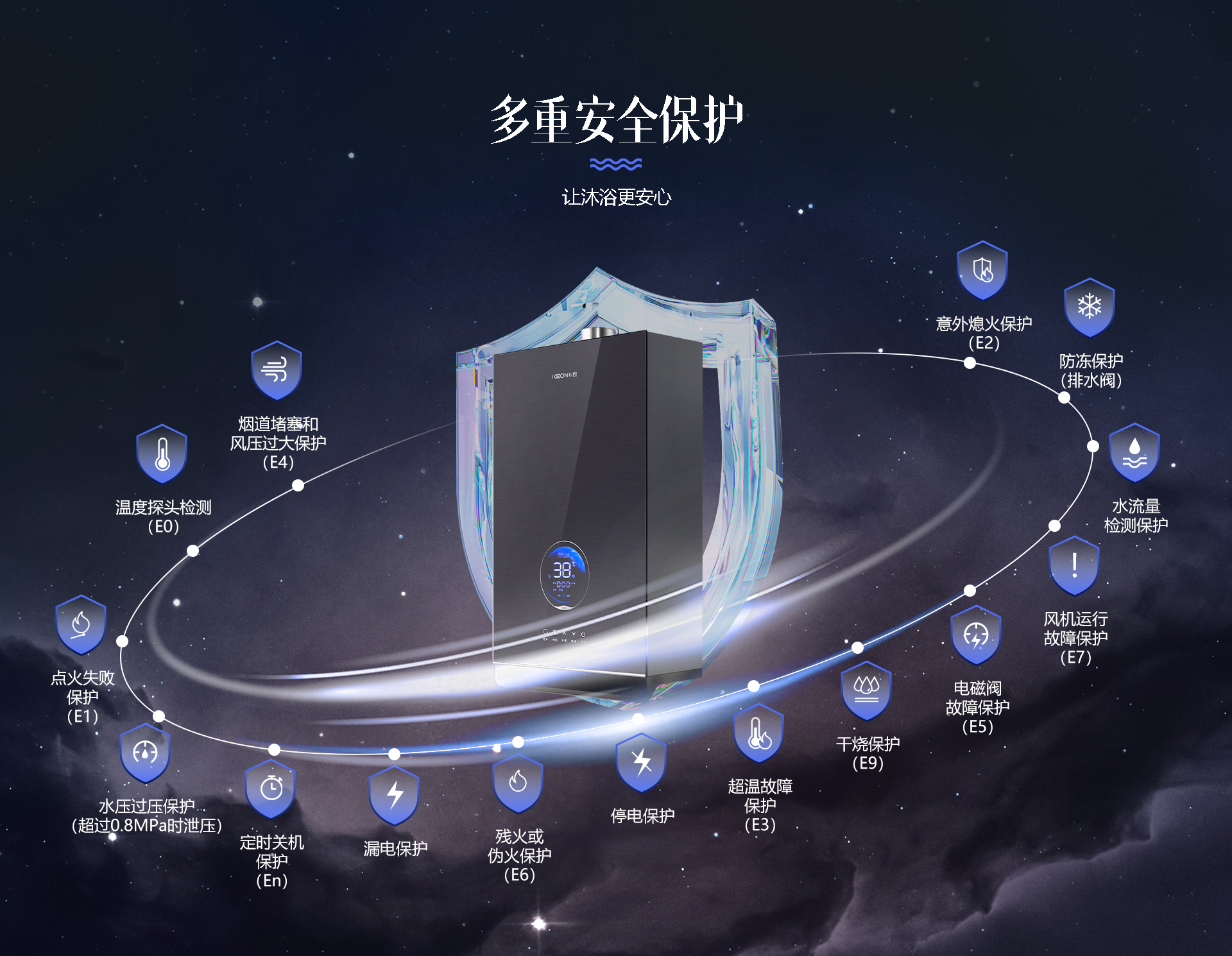 此外,科恩電器還特別注重產(chǎn)品的安全性,配備了14重防護措施,讓沐浴更安心。