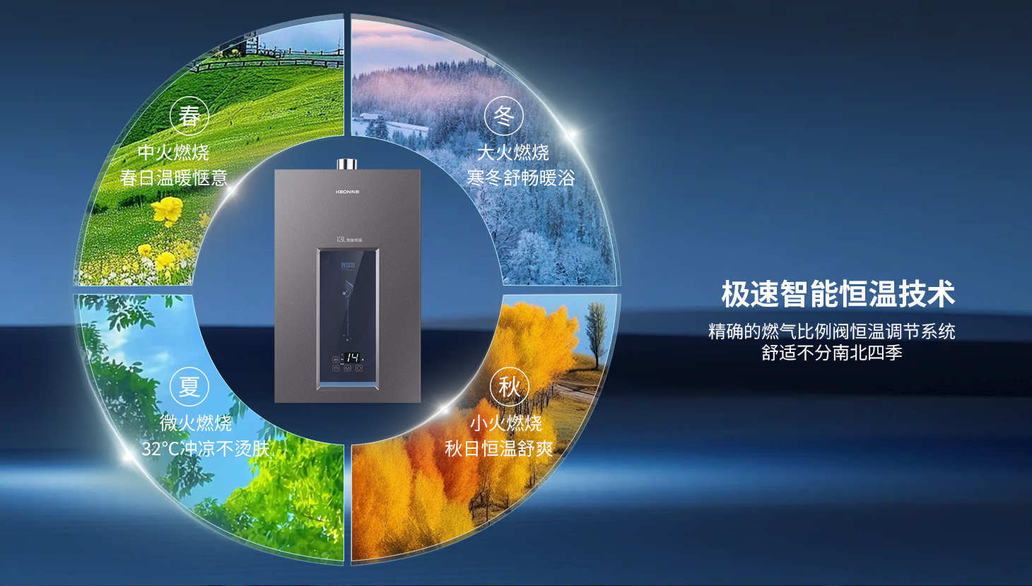 沐浴水溫反復波動,傳統熱水器運行噪音擾人,這些困擾用戶多年的問題亟需技術破局。科恩帶來全新解決方案,熱水器12KN67,13KN68震撼上市,搭載智能分段燃燒技術,實現熱水0等待!