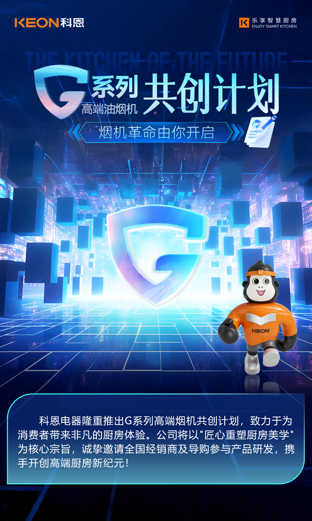 廚房,是家的心臟,承載著無數溫暖與美味。科恩以用戶視角為核心,為打造極致廚房體驗,正式啟動2025 G系列高端油煙機合作伙伴共創計劃。公司將秉持“以匠心重塑廚房美學”的產品理念,誠邀科恩全國經銷商、導購、售后參與產品研發,開啟金點子征集行動,共同攜手,開創高端廚房新紀元!