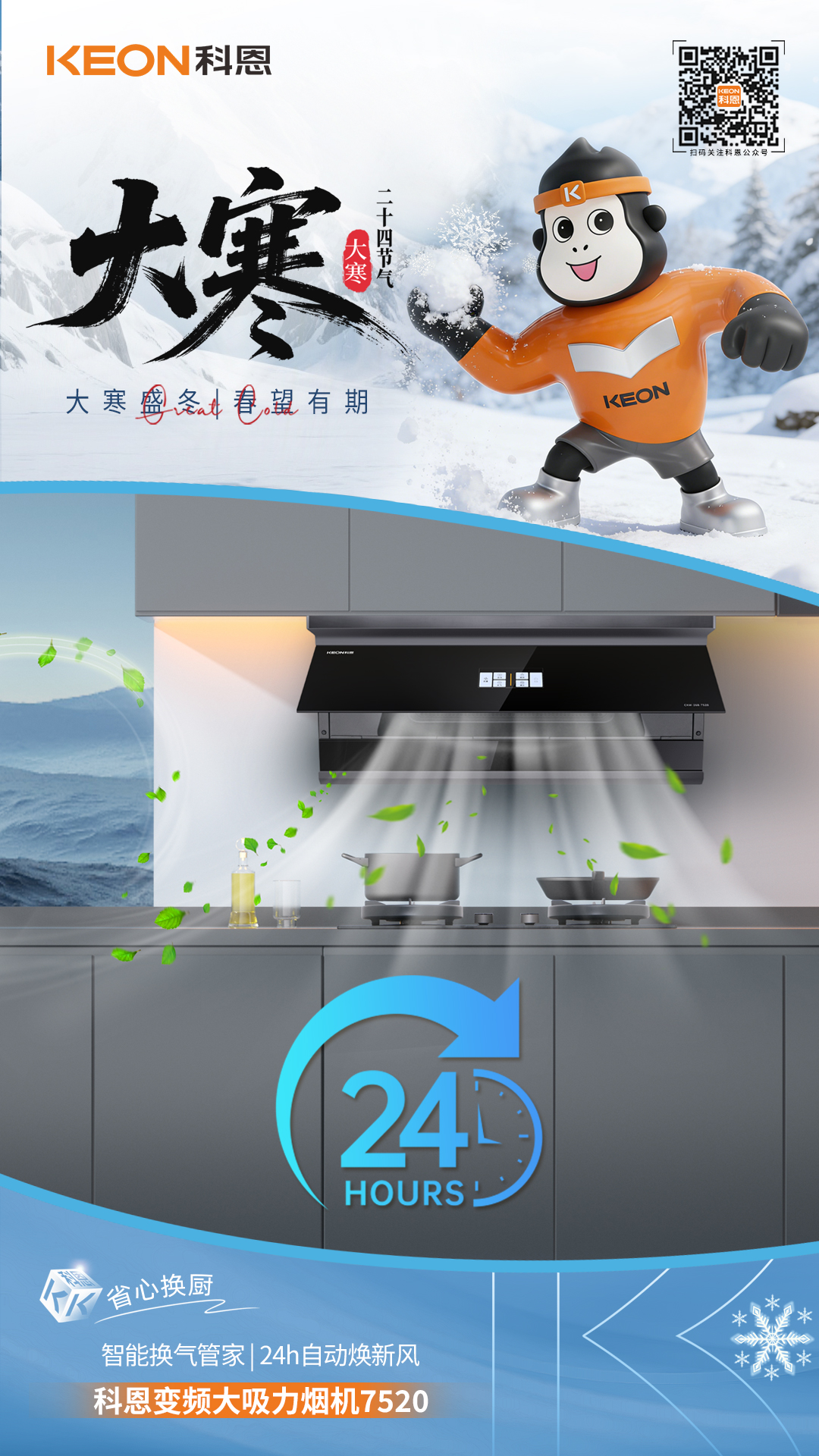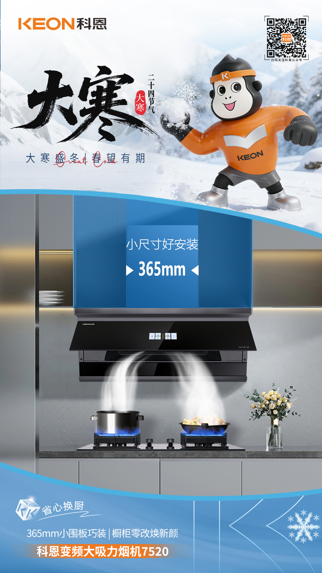 大寒暖廚無煙擾,科恩煙機7520解鎖烹飪新境