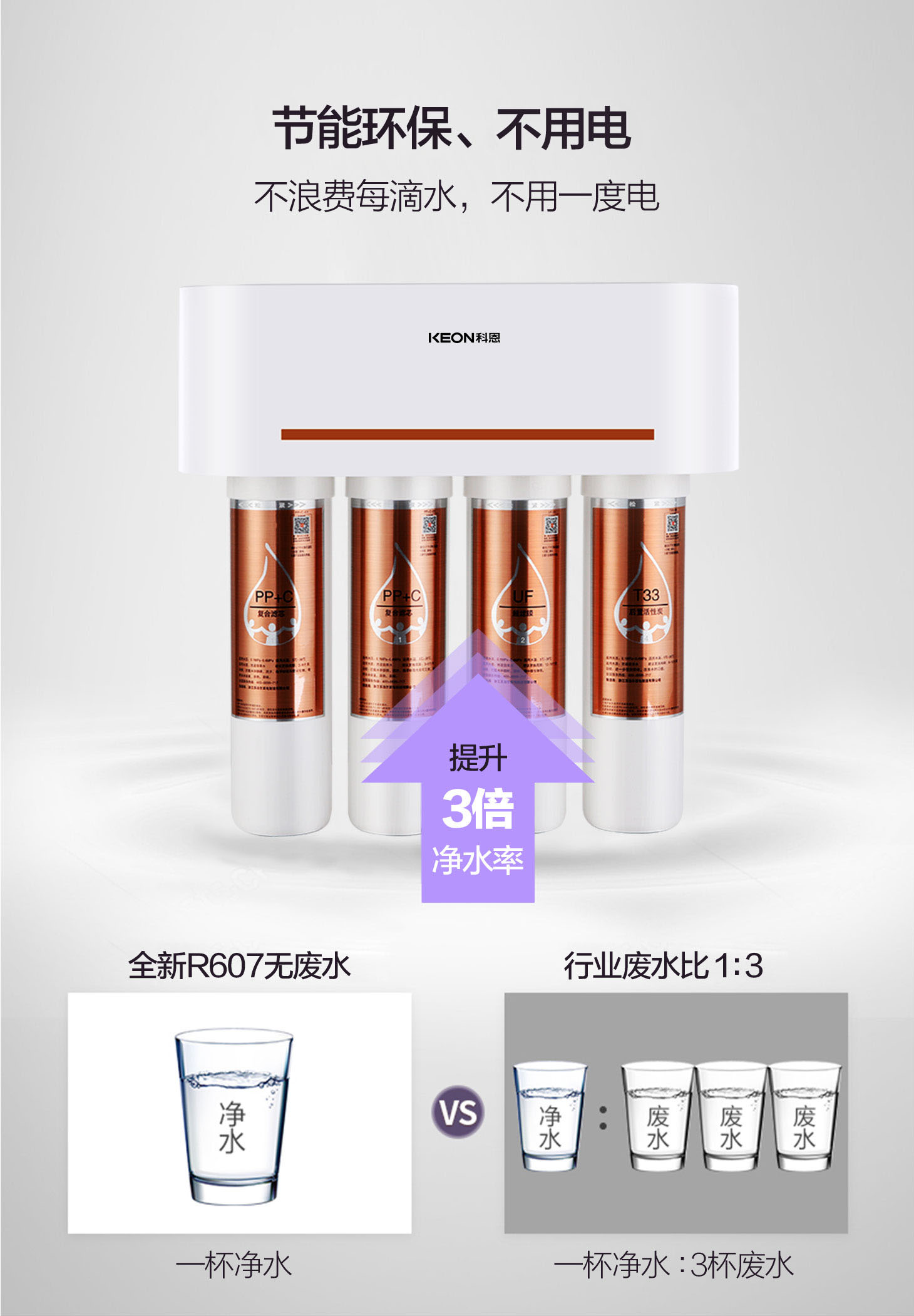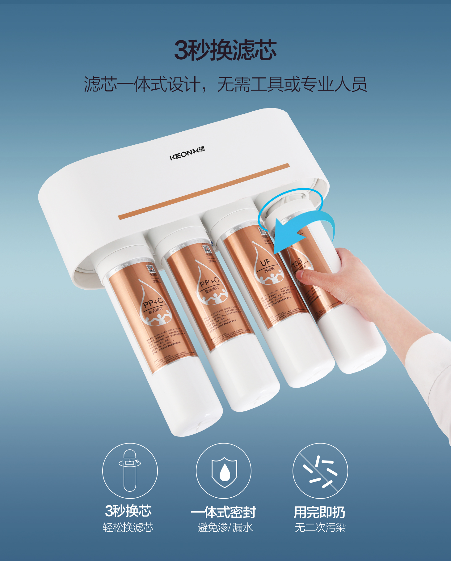卡接式一體式濾芯,3秒換芯,方便快捷
