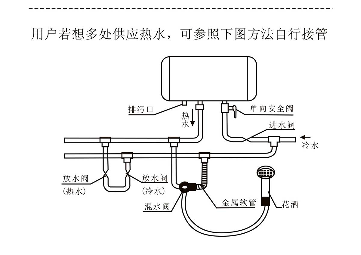 - 適應(yīng)水壓范圍廣,熱水容量大,可同時(shí)供給多個(gè)用水點(diǎn)用水