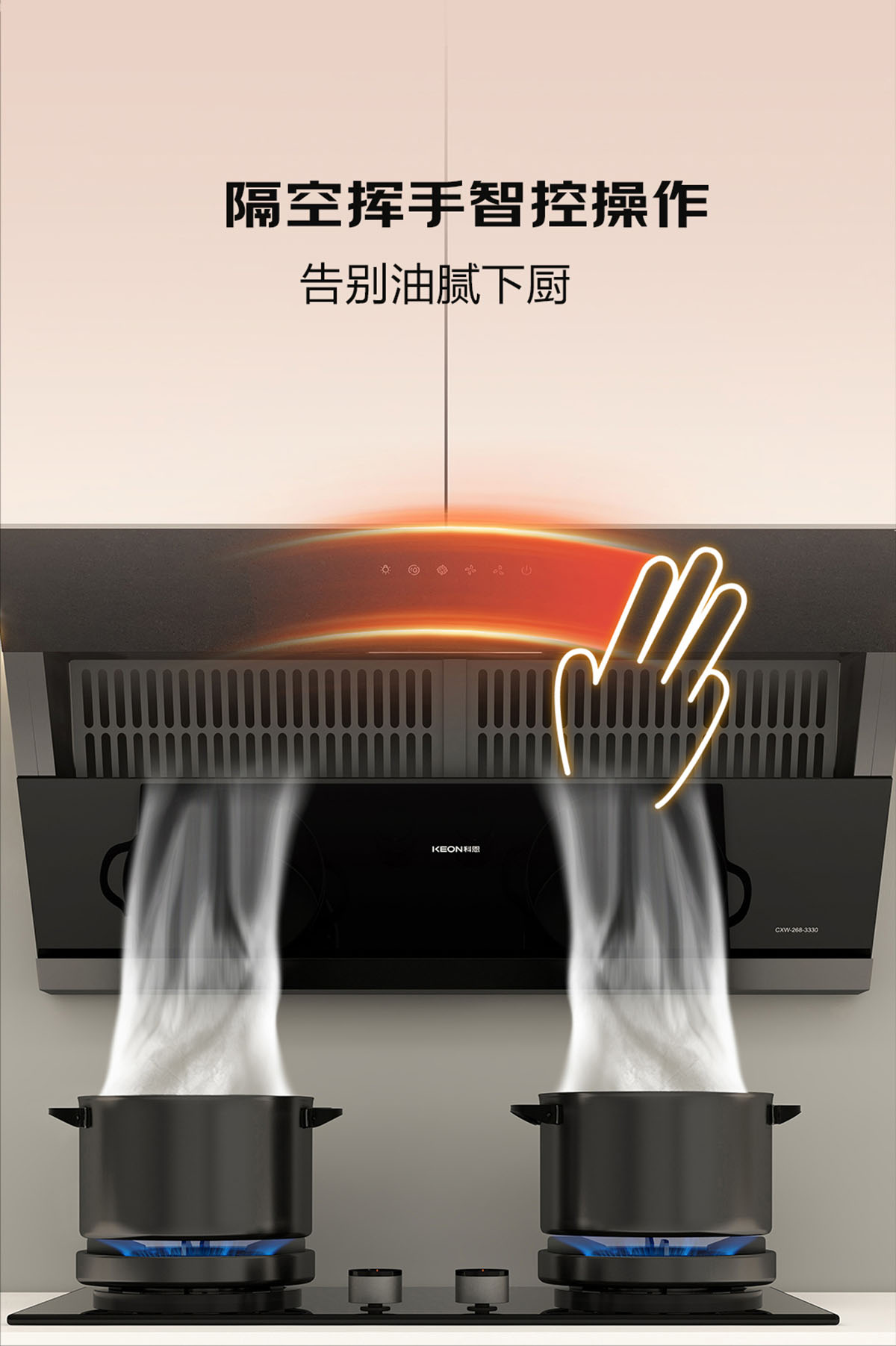 - 體感智控,隔空揮手操作,告別油膩下廚
