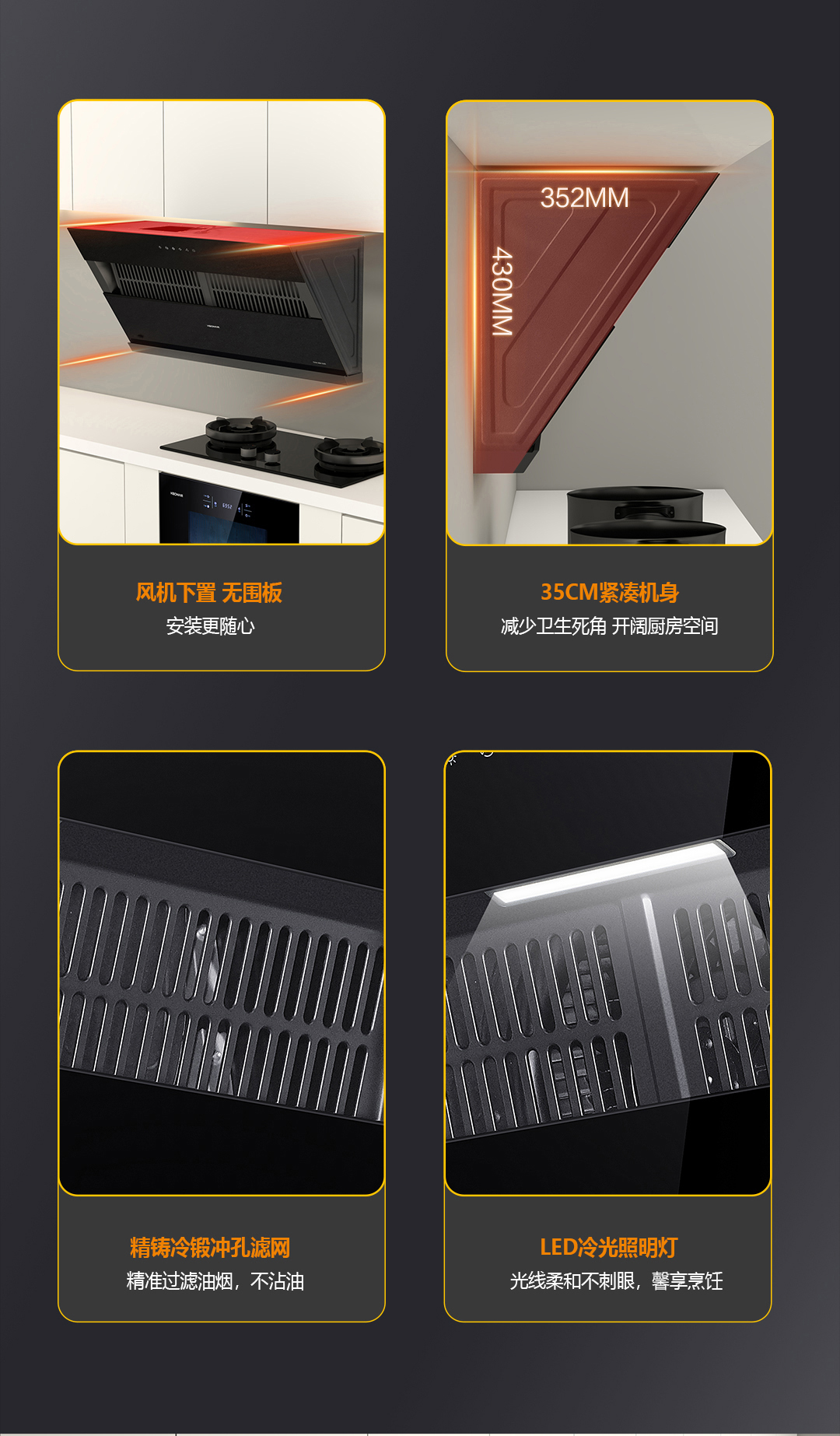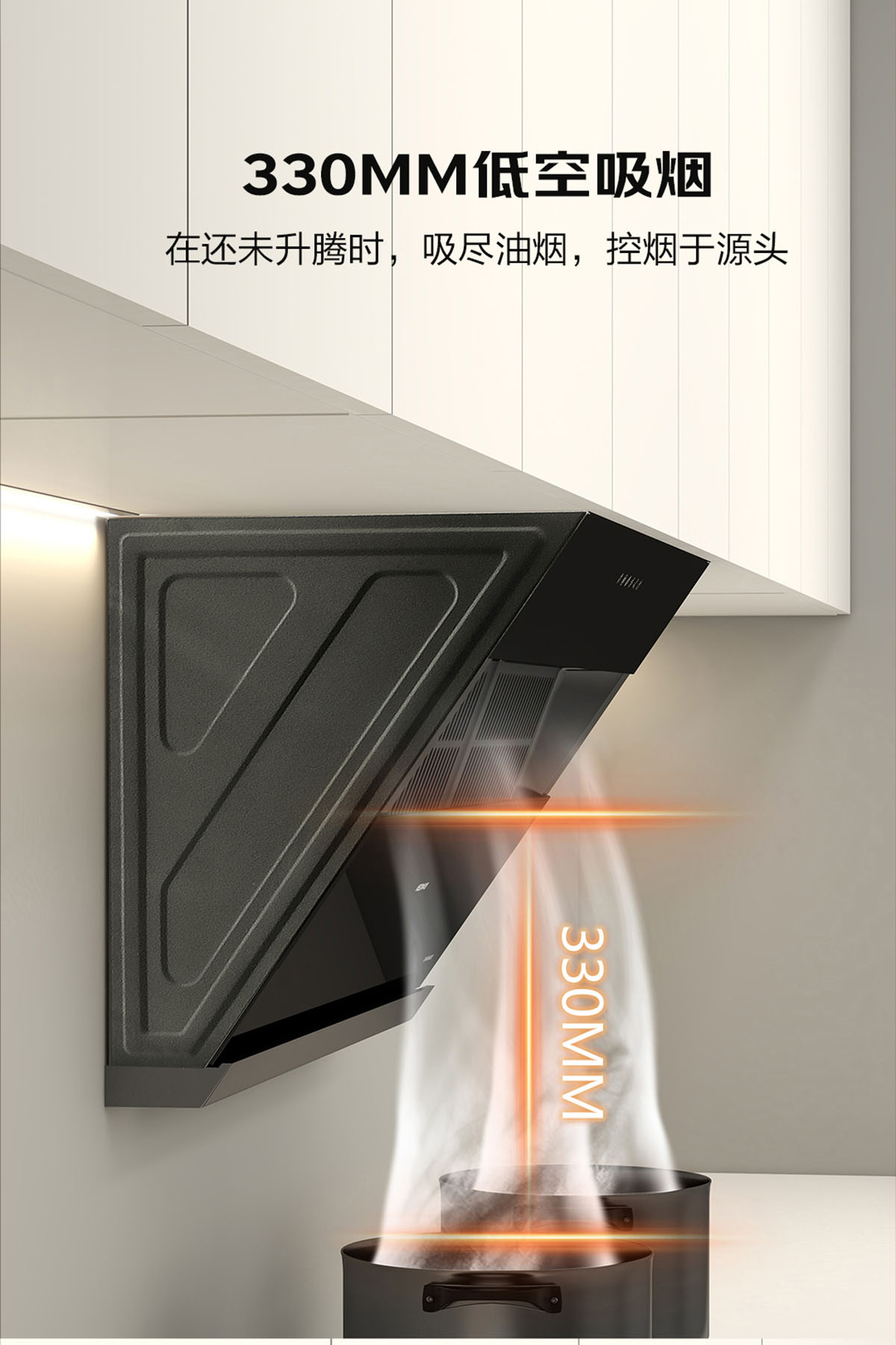 - 330MM低空勁吸,控煙于源頭