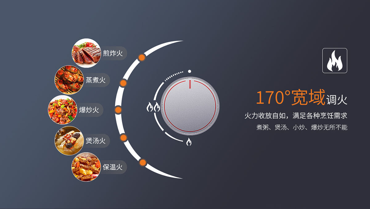 - 無極寬域調火,0°-170°收放自如,滿足各種烹飪火力需求