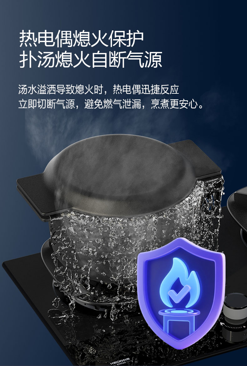 - 意外熄火保護(hù),火滅即刻切斷氣源,保障廚房安全