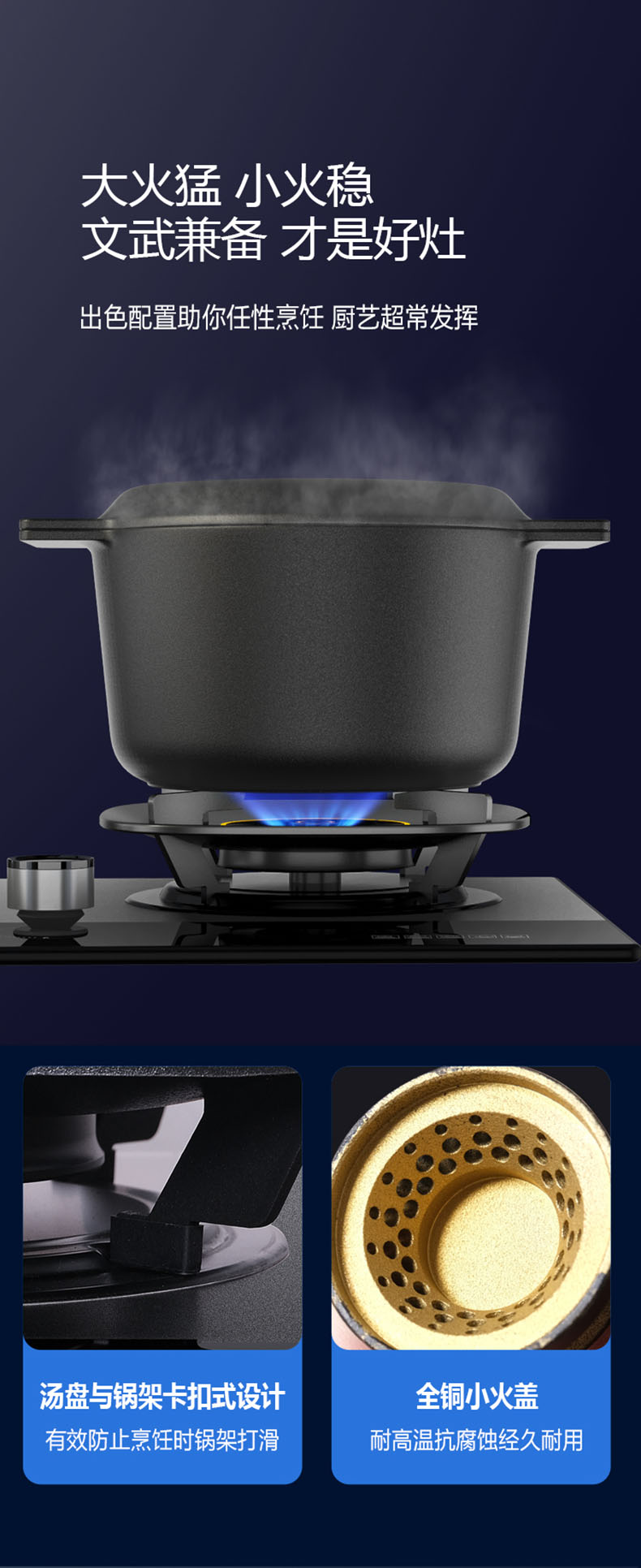- 可拆卸火蓋,便于深度清潔,避免污漬堆積