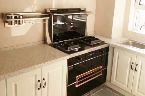 科恩廣西經(jīng)銷商提供的D101集成灶和蒸箱廚房實景