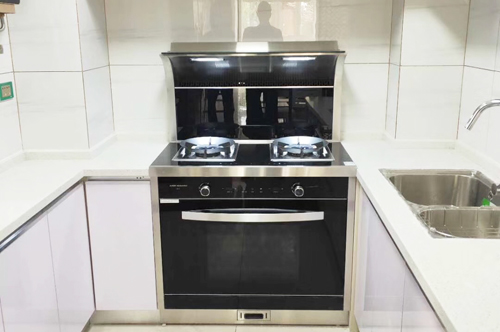 科恩廣西經(jīng)銷商提供的9011煙機和蒸箱廚房實景