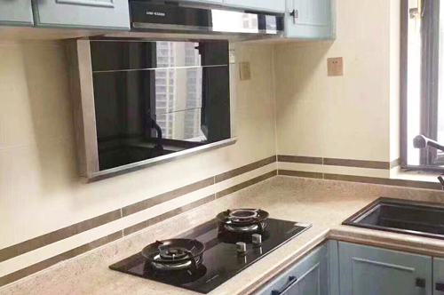 科恩四川經(jīng)銷商提供的T35煙機和不銹鋼水槽廚房實景